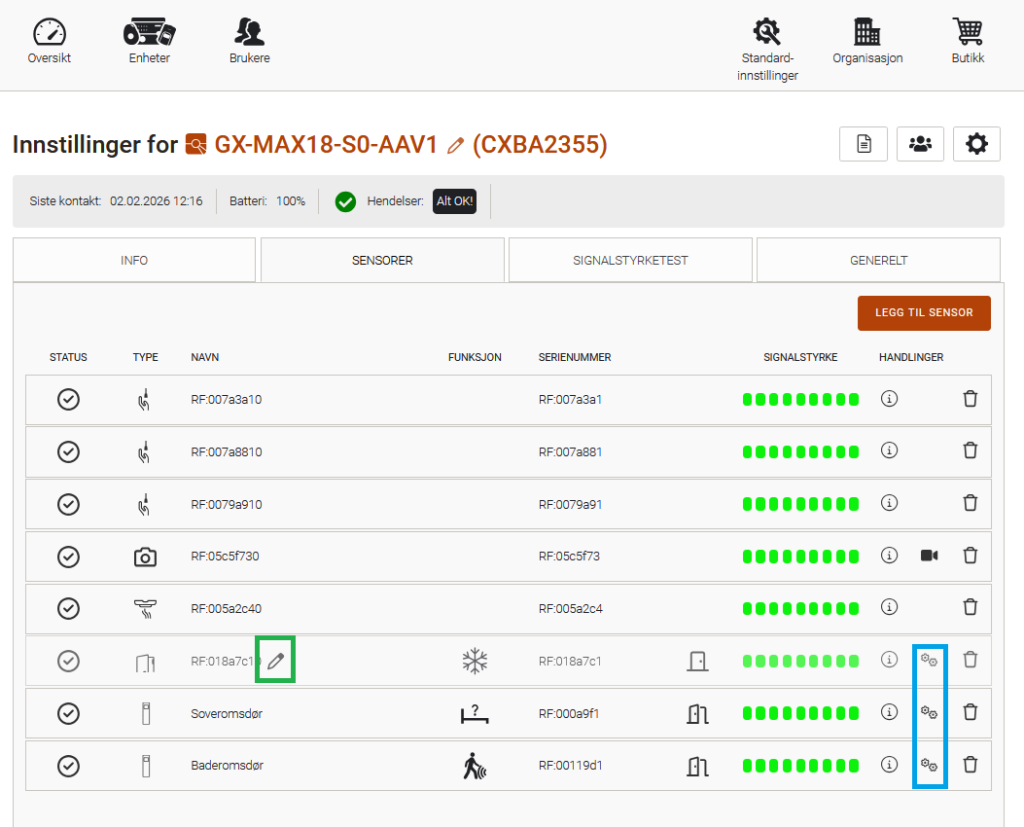 Sensorer og Climax stasjonær trygghetsalarm (hub) knyttes sammen gjennom innlæring. Innlæring handler om å fortelle hub at den skal lytte til radiosignaler fra en (eller flere) sensor(er).