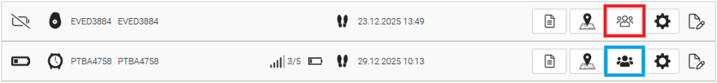 Dersom symoblet for varslingslisten er fylt (blått), så har enheten minimum en varselmottaker. Dersom ikonet bare har kontur, så er varslingslisten tom (rødt).